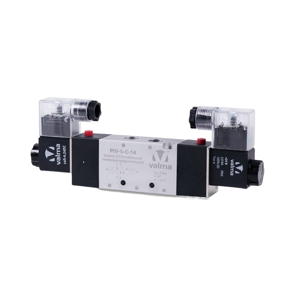 PIV-S-C-14.220AC Клапан пневмораспределительный 5/2 бистабильный, G 1/4''
